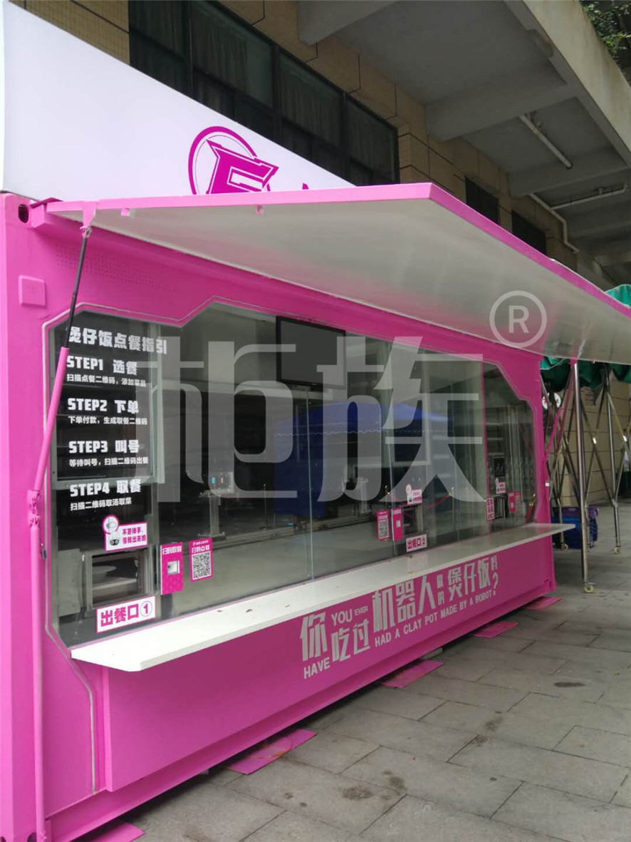 除了用于應急的公路、社區(qū)、醫(yī)院等地臨時用房外,柜族為碧桂園旗下千璽機器人餐飲集團定做的集裝箱煲仔飯機器人,2020年2月13日由國強公益基金會向武漢市捐贈使用。該設備于2月14日運抵武漢市南區(qū)方艙醫(yī)院(湖北國土資源職業(yè)學院)為志愿者、醫(yī)護人員及有需要的人提供24小時安全美味的煲仔飯。