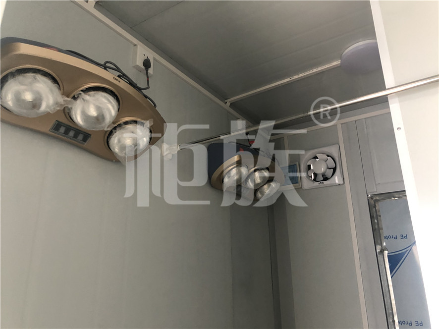箱體用材:鍍鋅方管框架、A級(jí)大波紋夾芯墻板、不銹鋼門、鋁花紋地板。