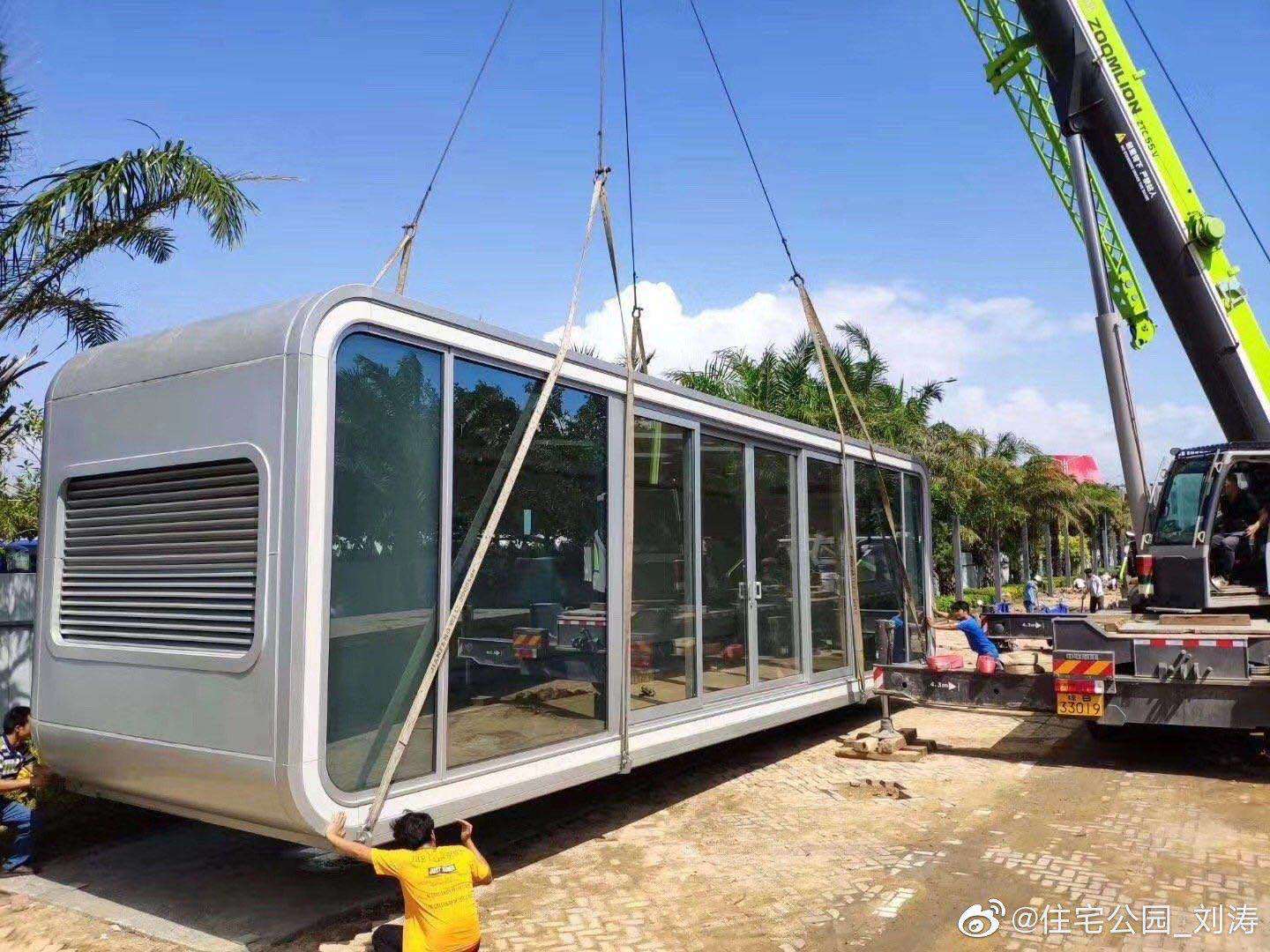 在功能布局上,一層起居、二層休閑。一層進門右邊為吧臺、左邊沙發(fā)茶幾,上部天花為暗藏小玄機的升降床。衛(wèi)生間、洗漱臺與臥室相連,飄窗小陽臺,處處體現(xiàn)的都是居住的方便與舒適。大面積落地窗,就是為風景好的沙灘、海邊等度假地設計的,室內生活溫馨小資、戶外美景賞心悅目,陶醉其中、無限樂趣。