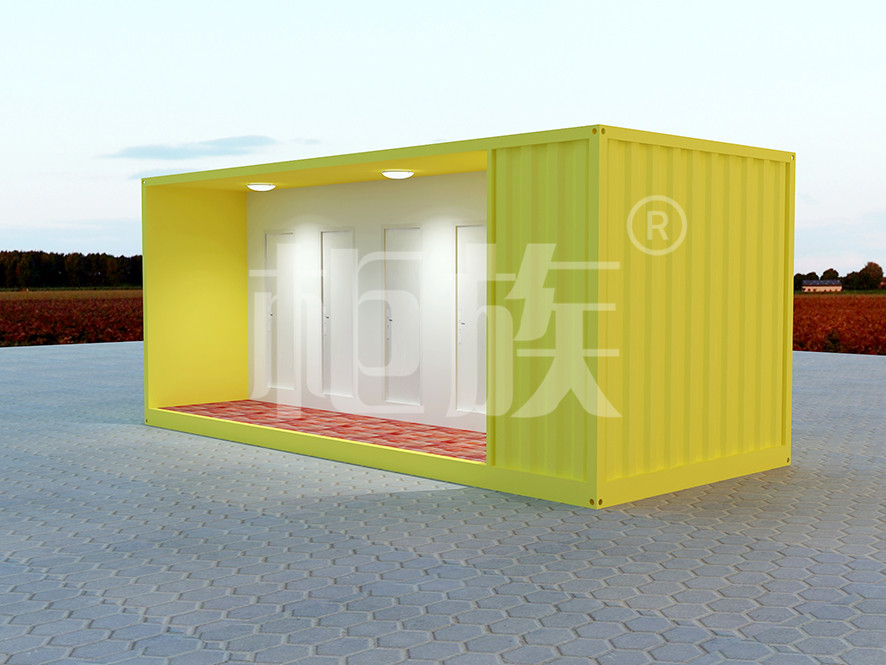 明黃色的六位衛(wèi)生間,現(xiàn)場接通管道水電即可使用。外觀清新大方,設(shè)施齊全、功能實用。